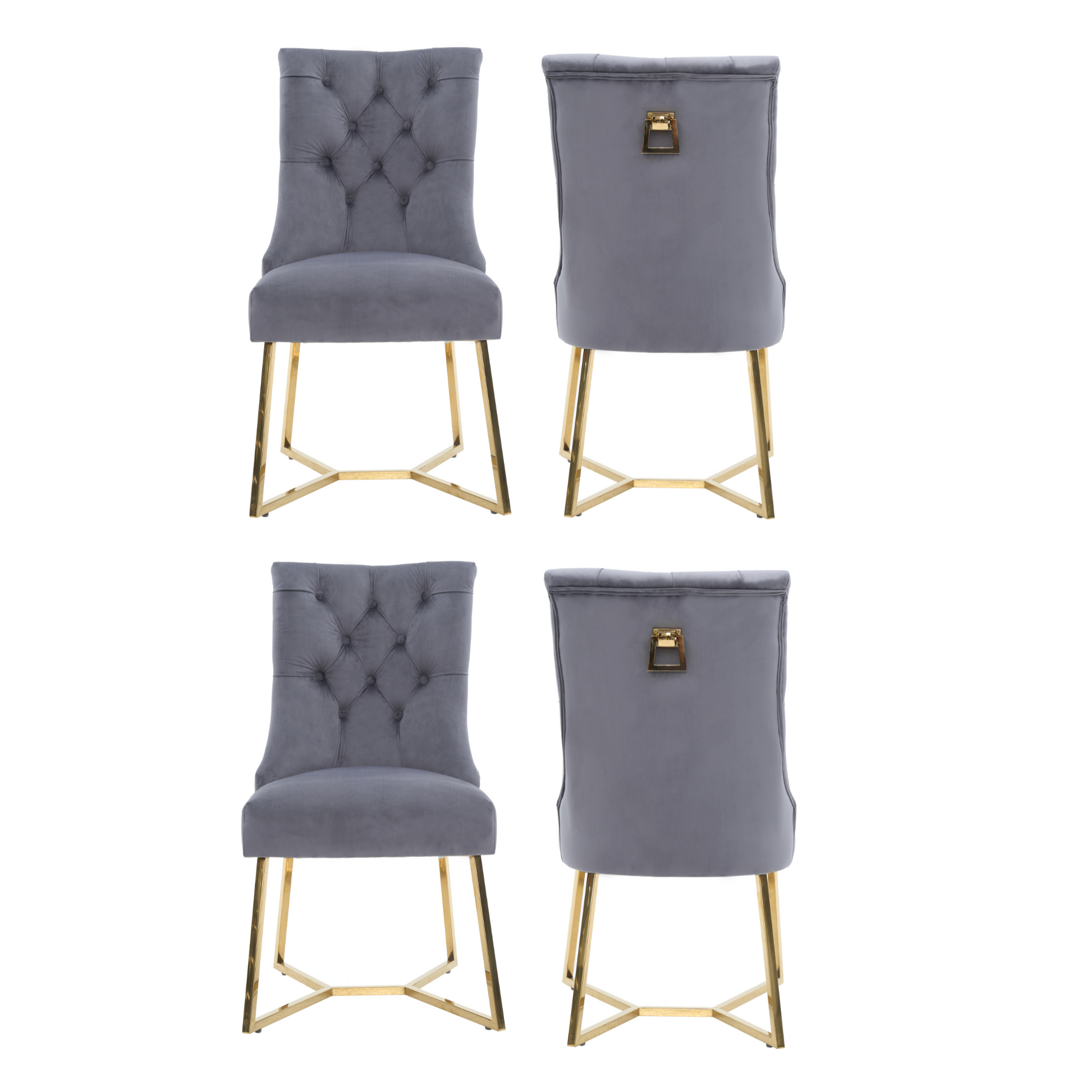 Ambra Velvet Dining Chair – Tufted Accent with Gold Legs & Ring Pull