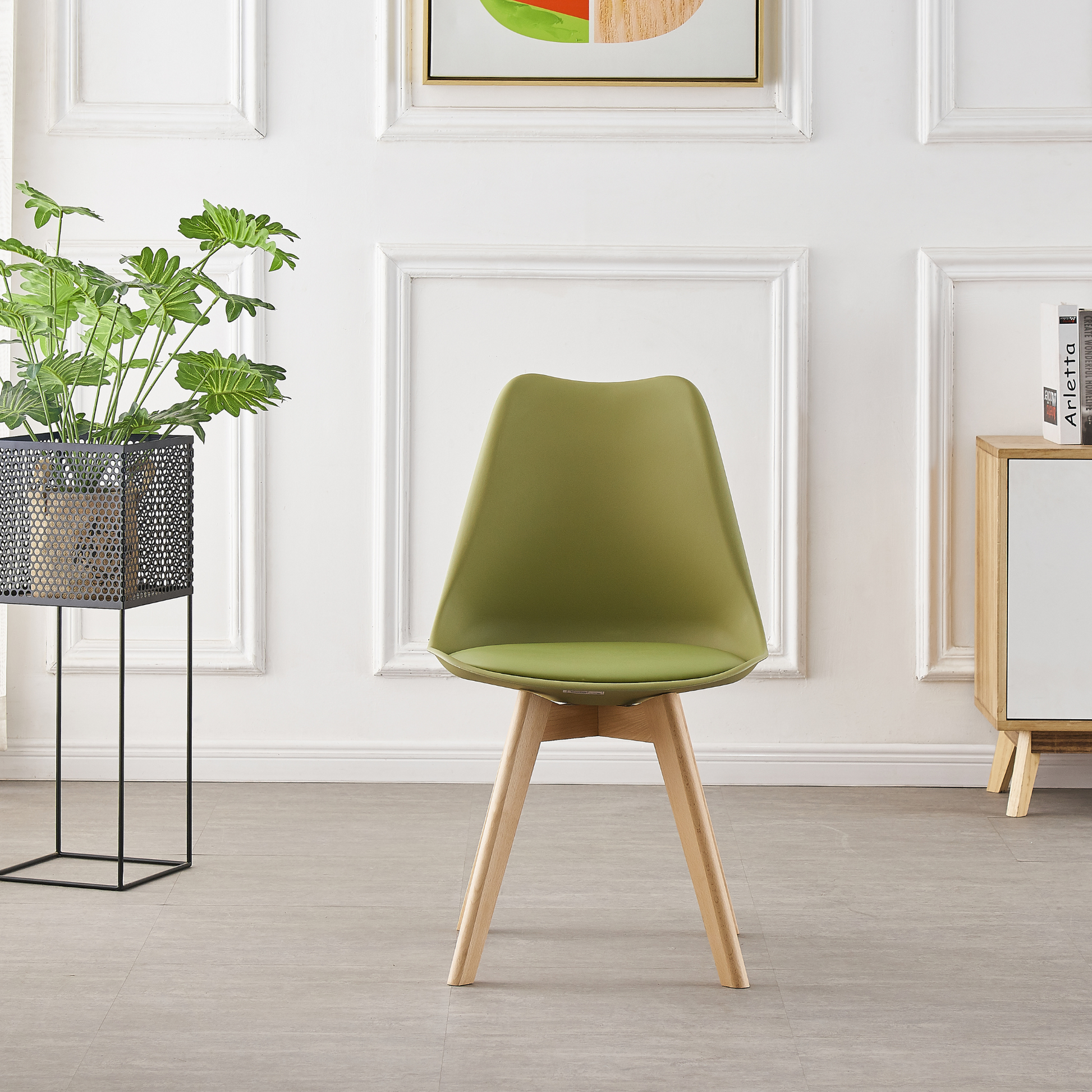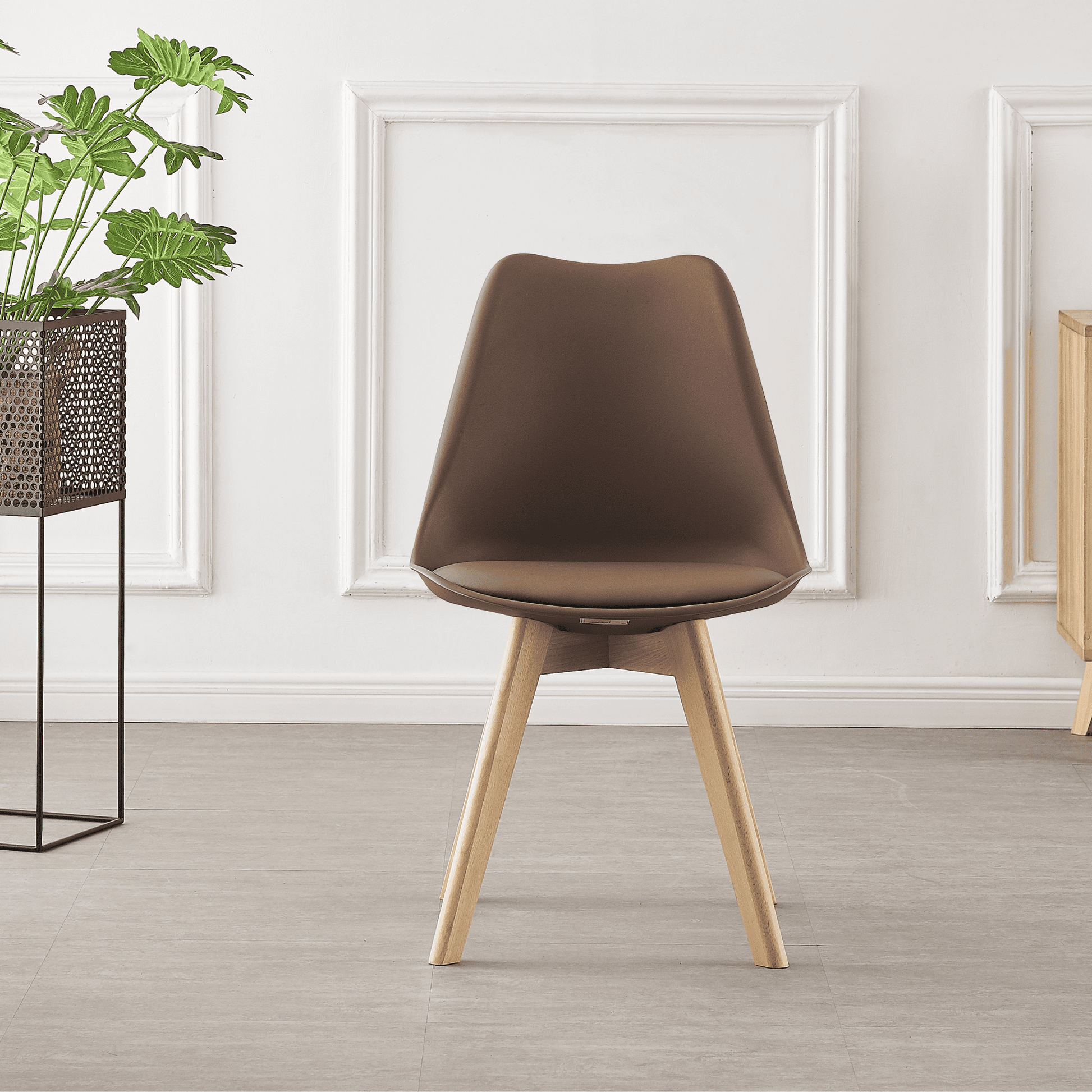 Paired with the table are four Lorenzo dining chairs that embody Scandinavian-inspired living. Designed with a comfortable molded shell and soft padded seat cushion, each chair provides excellent ergonomic support during meals, conversations, or even long working hours. The gentle waterfall edge relieves pressure on the legs, while solid beech wood legs and anti-scratch foot pads ensure your floors stay damage-free.