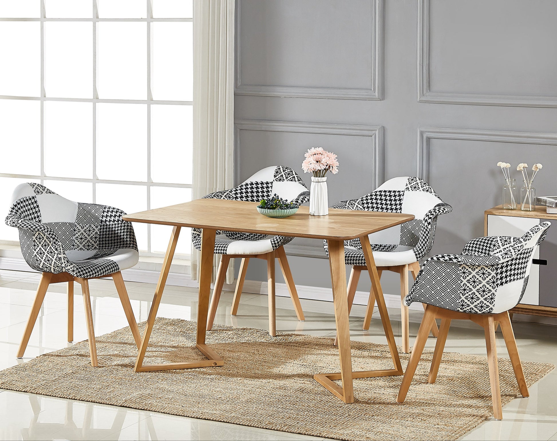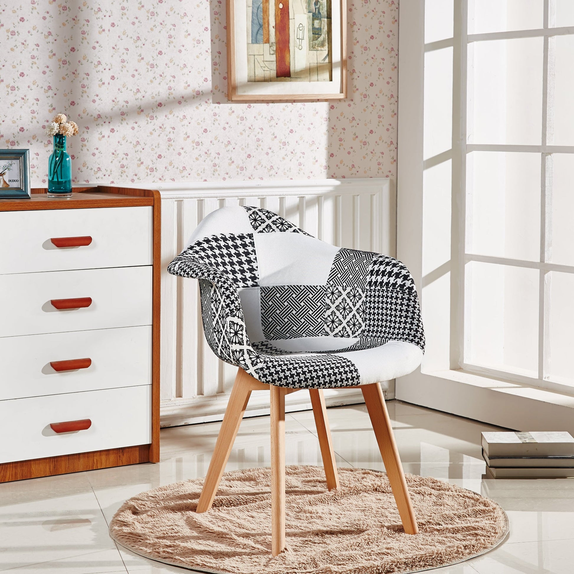 Our Patchwork Tulip Tub Chair is a bestseller. The molded polypropylene shell is covered with foam cushioning - providing that extra intelligent support where it's needed most. Supported with solid wooden legs. Sit in comfort around the dining table or cuddle up with your favorite book. The durable and iconic design is eye-catching and will surely make a statement in your home