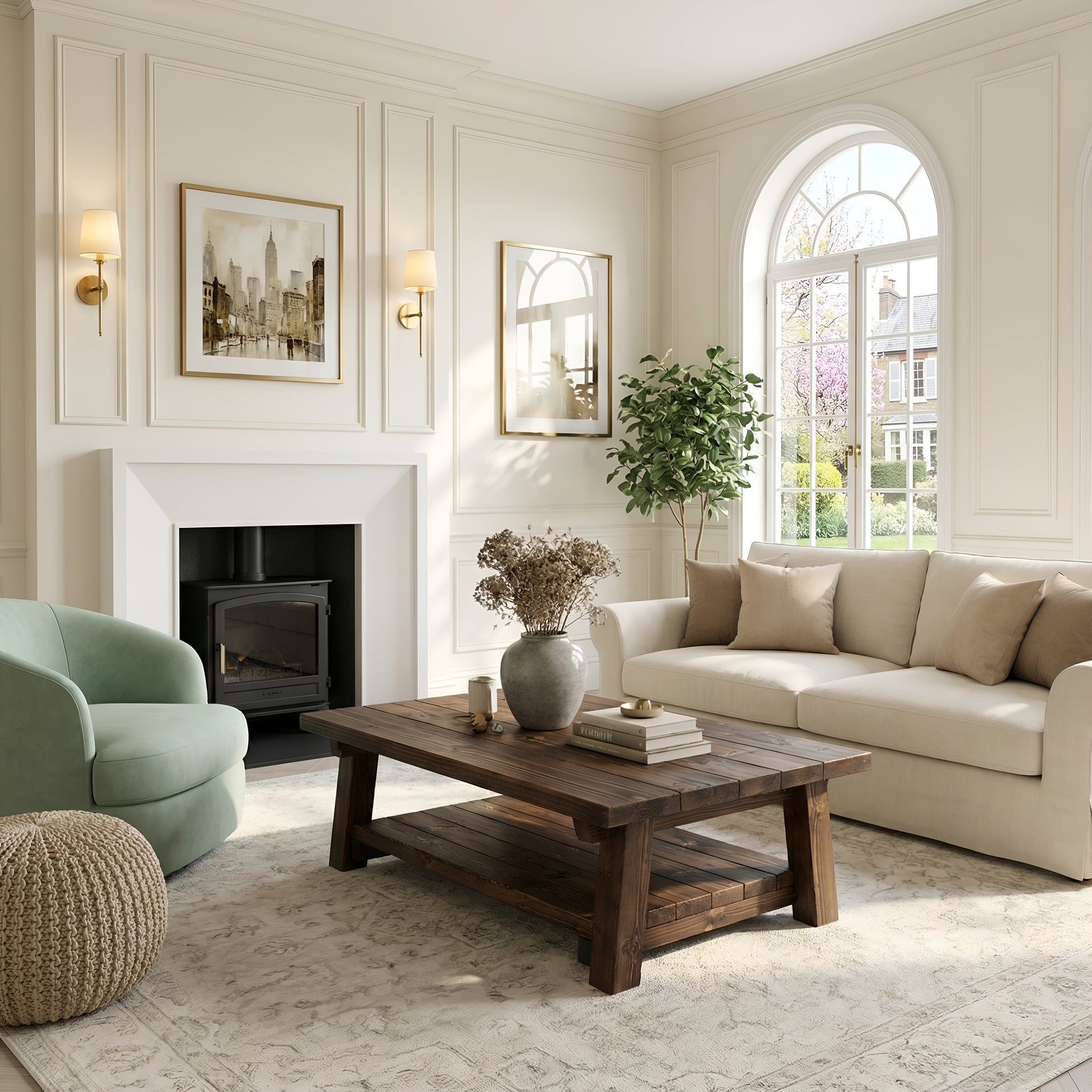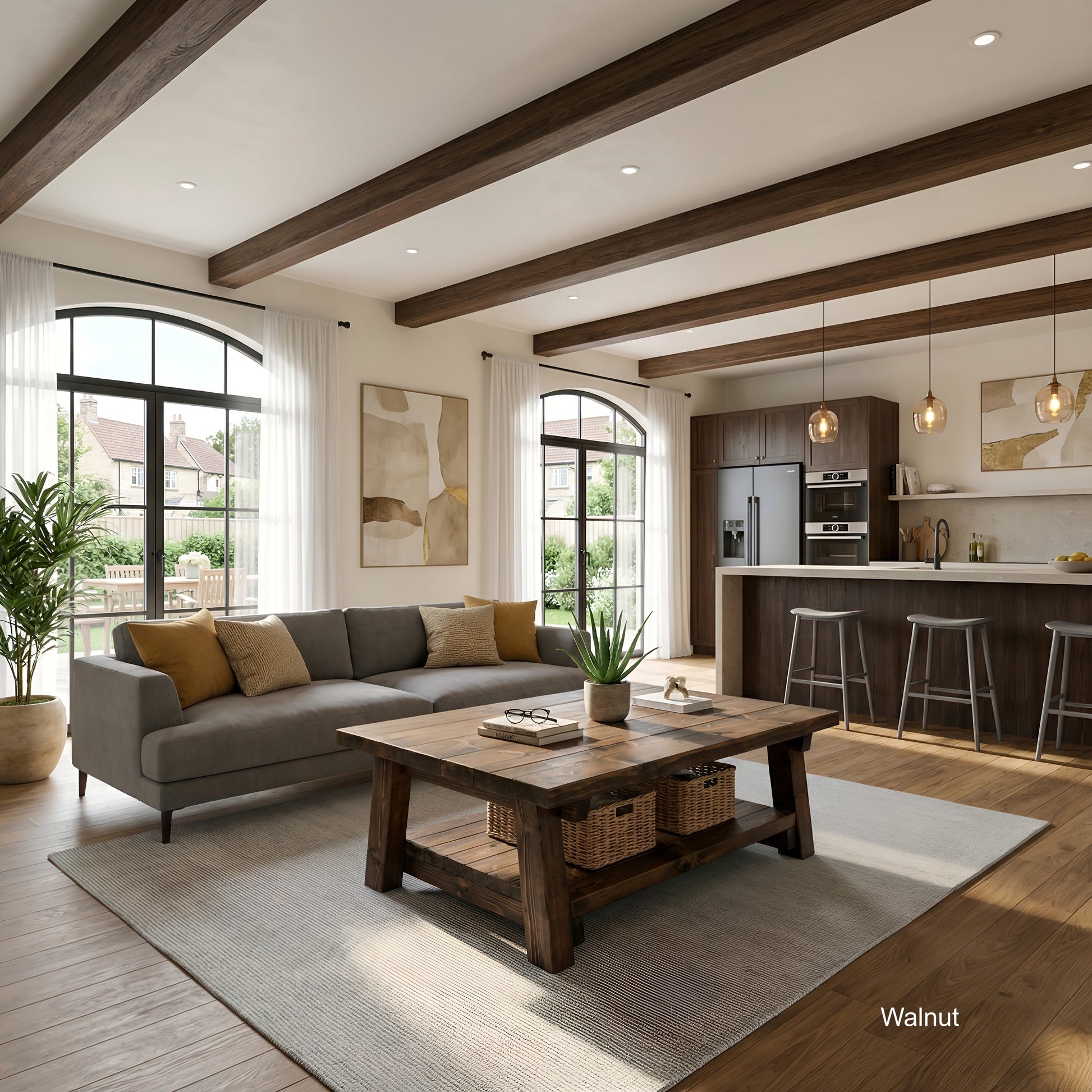 Large ARBA Rustic Wooden Coffee Table With Shelf In Walnut