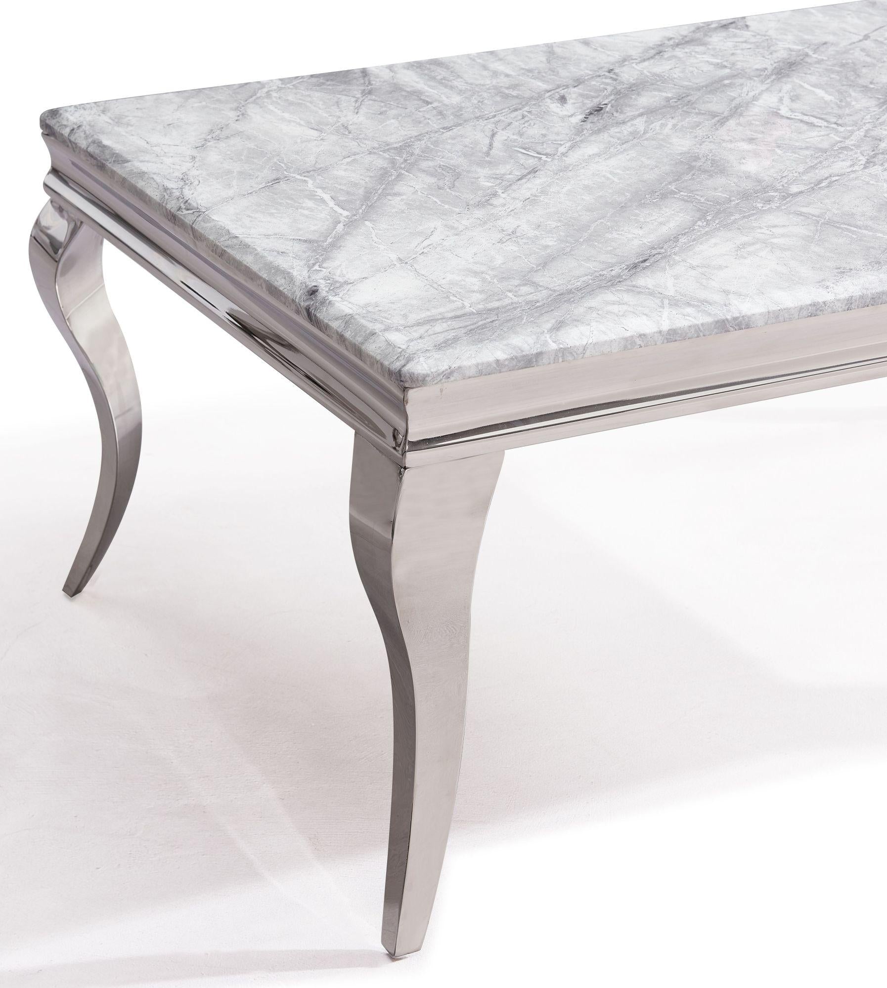 Add refined sophistication to your dining space with our Luxury Grey Marble and Chrome Dining Table. Measuring 150cm in width, this striking table is designed to bring elegance, durability, and modern style to any home.