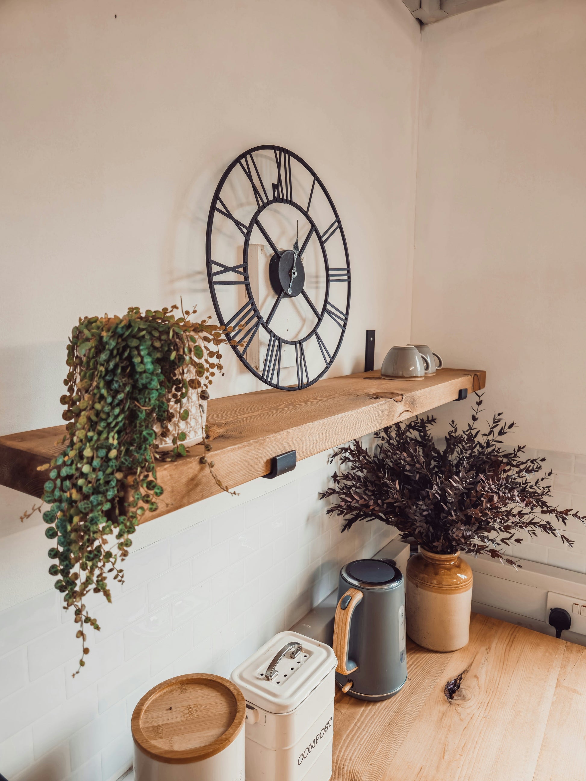 Handcrafted Solid Wood Shelf Rustic Industrial with Steel Brackets