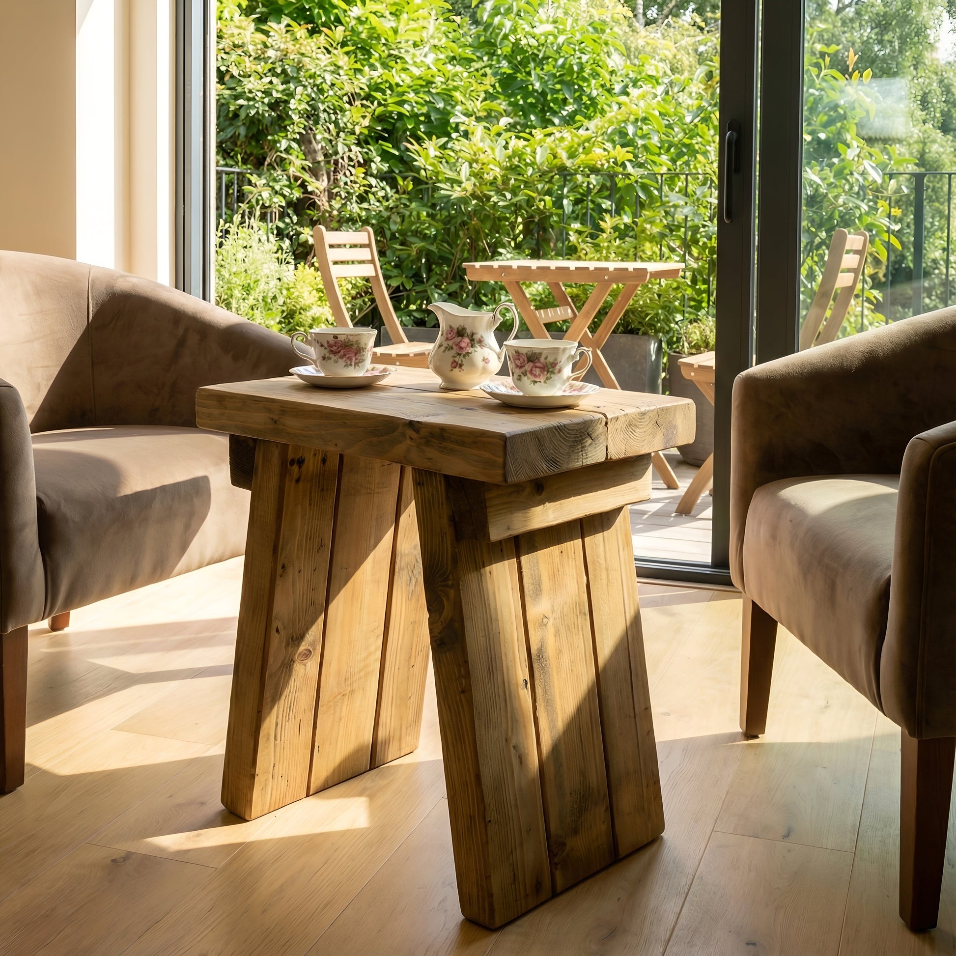 Small DIAN Rustic Wooden Coffee Table With Angled Legs / Side Table