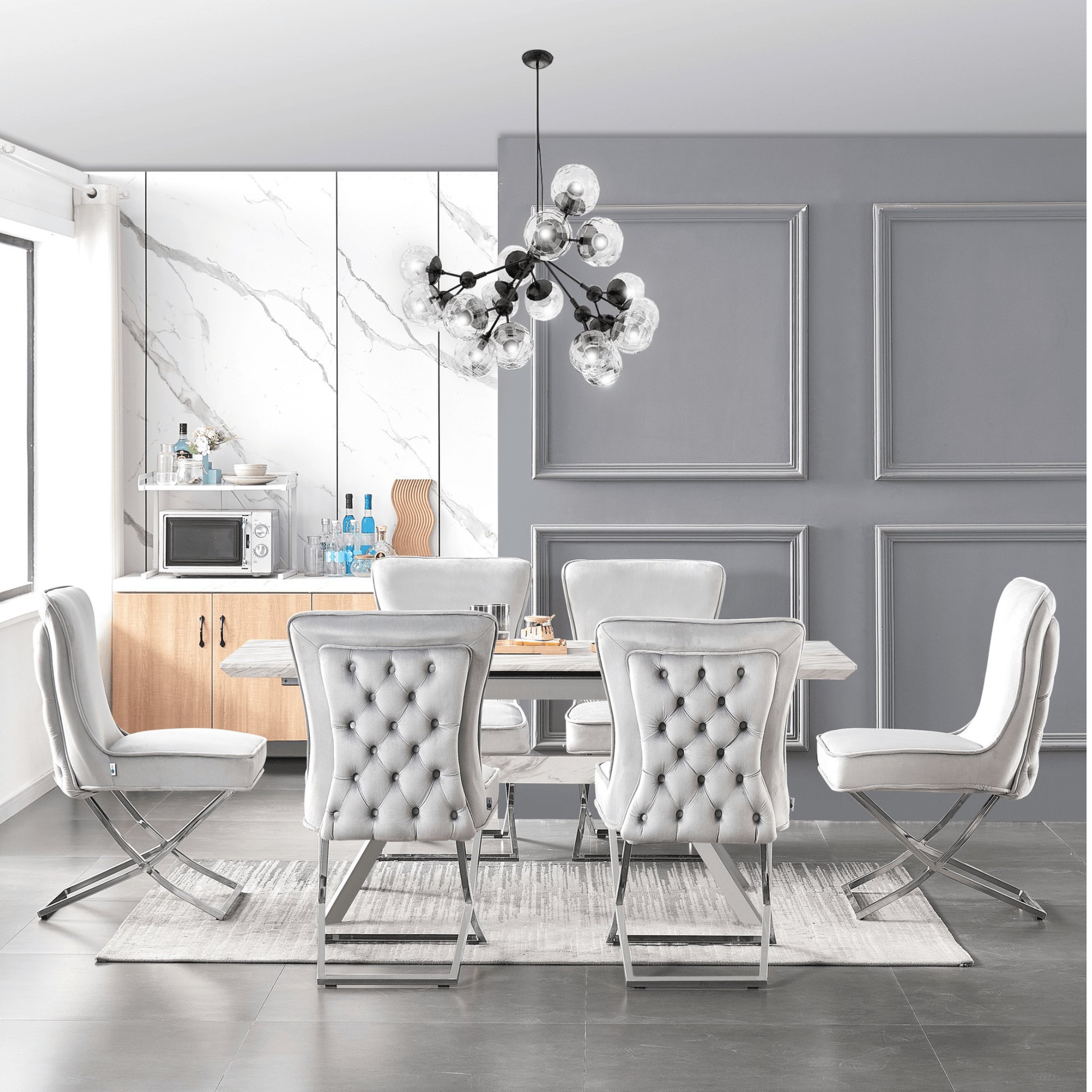 Boasting an effortlessly elegant soft lush velvet and buttoned back design. The epitome of true luxury and opulence. The Trafalgar Lux Velvet Dining Chair has been carefully curated with attention to detail and utmost precision. Evoking notions of sophistication and grandeur. Dramatic and refined. Majestic and delicate. This gorgeous piece is sure to leave a lasting impression. Featuring a premium quality soft velvet, deep buttoned back and stainless steel chrome or gold legs. The Trafalgar is a true symbol of comfort and style.
