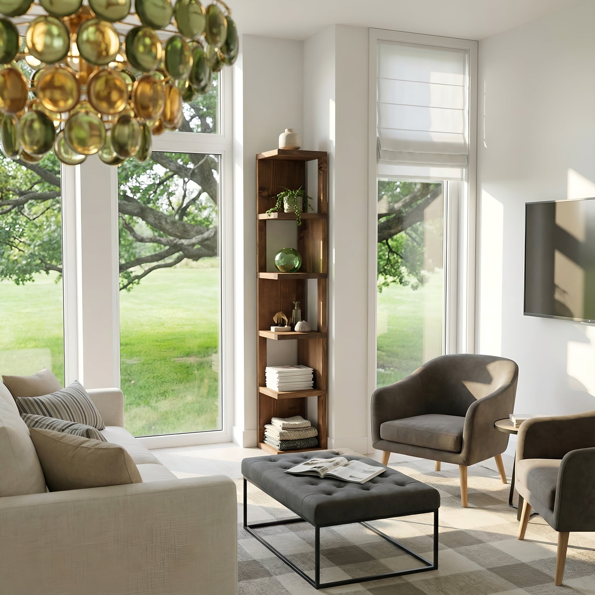 Valora Solid Wood Corner Bookshelf In Walnut Colour – Natural Finish Open Bookcase, Rustic Scandinavian Design