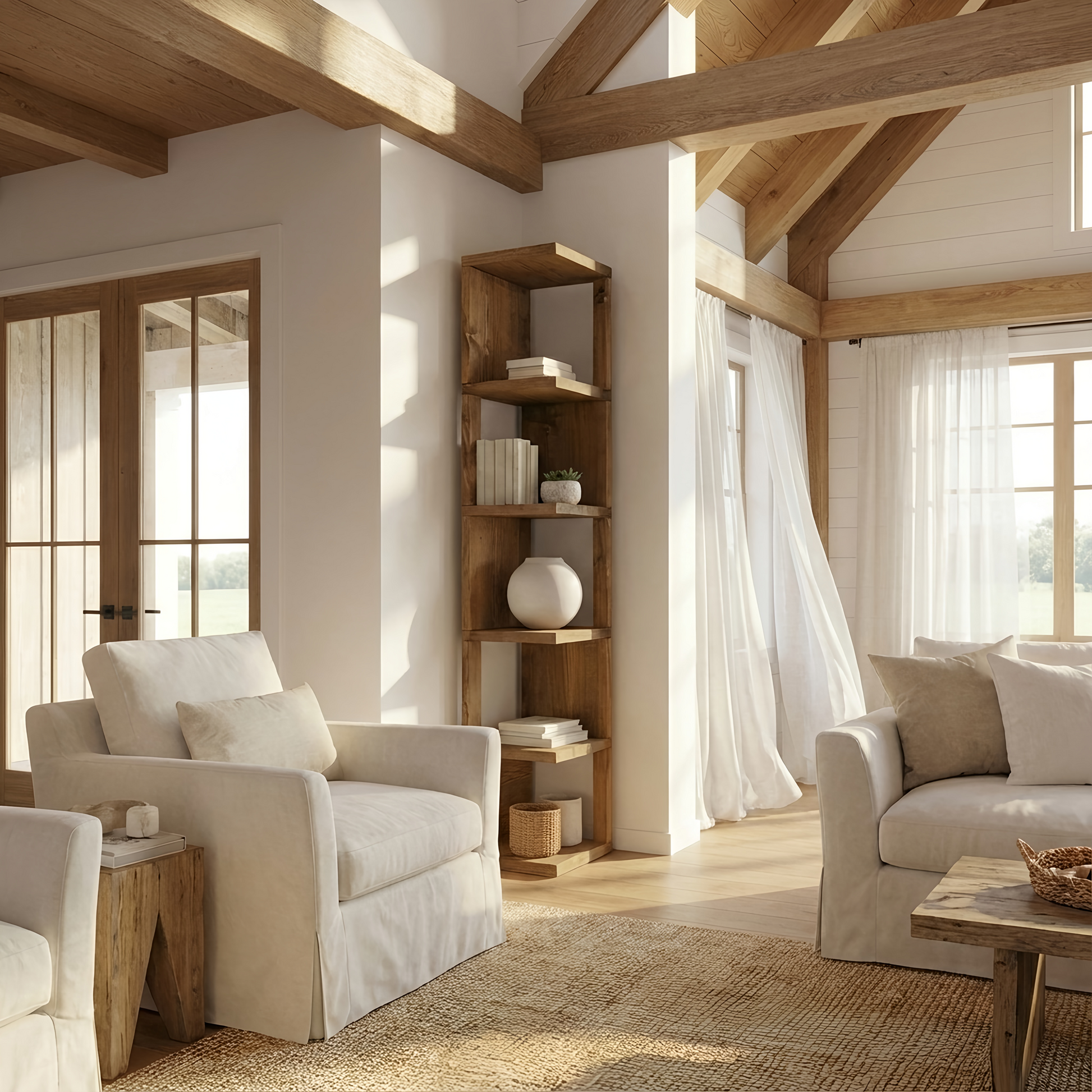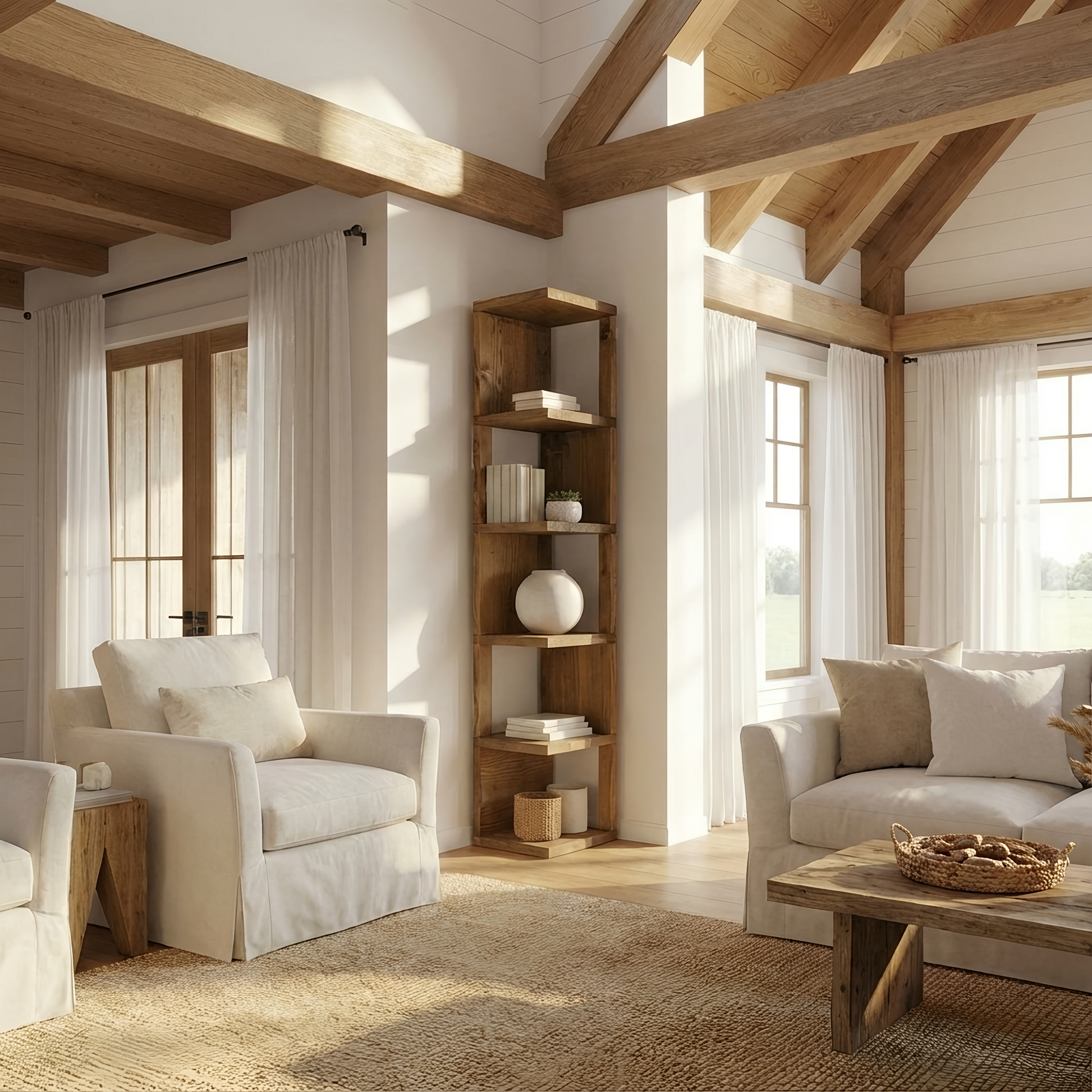 Valora Solid Wood Corner Bookshelf – Natural Finish Open Bookcase, Rustic Scandinavian Design