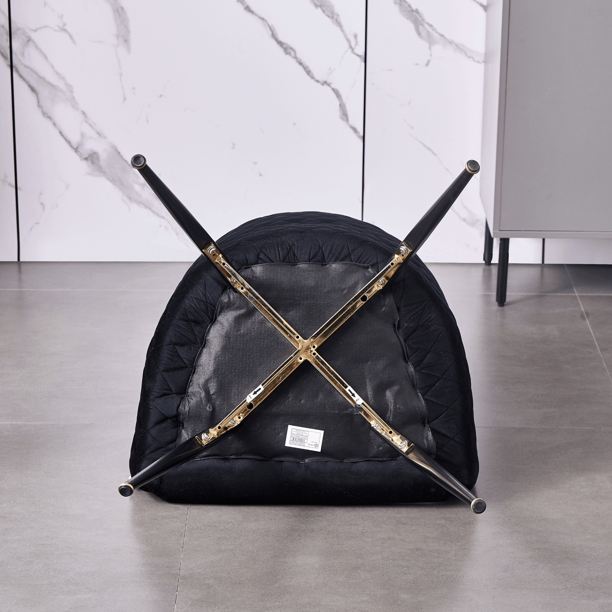 Experience the perfect combination of elegance and comfort with this velvet-upholstered dining chair. Designed with a curved backrest and plush cushioning, it offers both style and support, making it a versatile addition to any space. The solid metal frame, complemented by gold-tone cross-bracing and sleek black legs, ensures long-lasting durability while supporting up to 250 lbs. Crafted with high-quality, stain-resistant velvet, this chair is easy to maintain and retains its luxurious appeal over time.